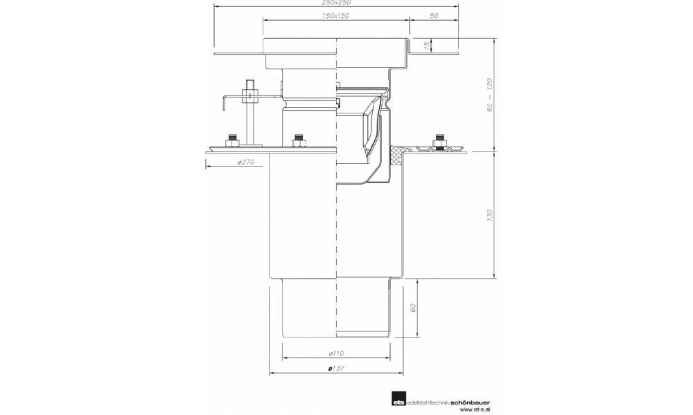BODENABLAUF Q150mit Press- & Dichtflansch