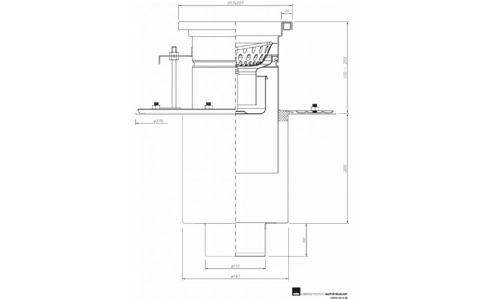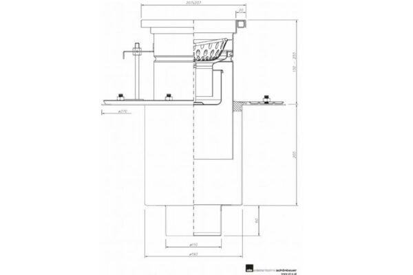 207 x 207 mm, DN100 senkrecht, 2-teilig