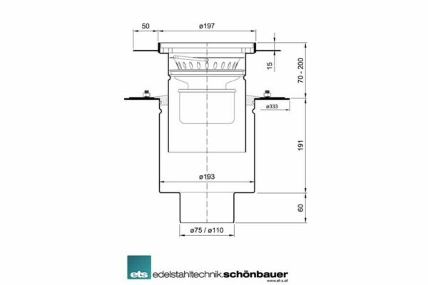 ø 200 mm, DN100 senkrecht, 2-teilig