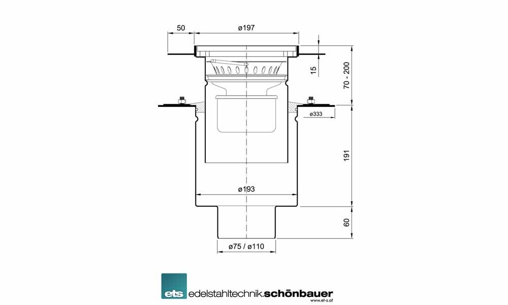ø 200 mm, DN100 senkrecht, 2-teilig